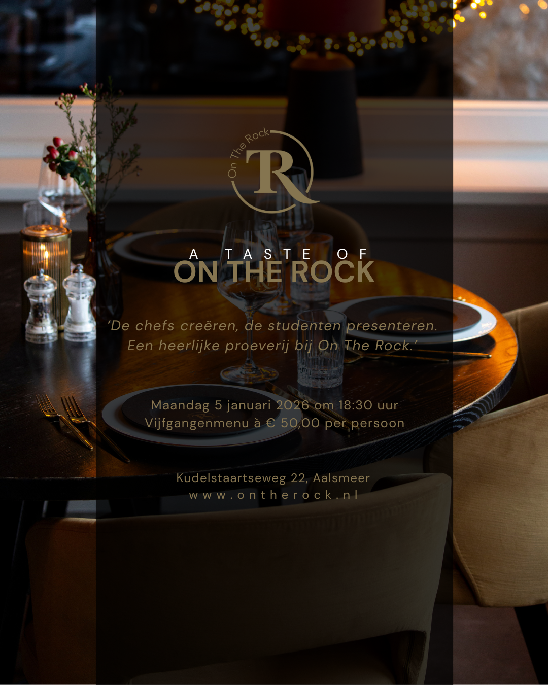 Op maandag 5 januari 2026 organiseren wij samen met studenten Summer, Noor, Malaika en Olaf een proeverij ‘On The Rock’.